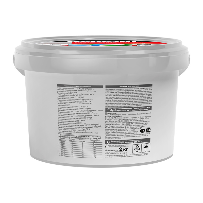Затирка для широких швов Церезит CE 43 Super Strong дымчато-белая, 2 кг