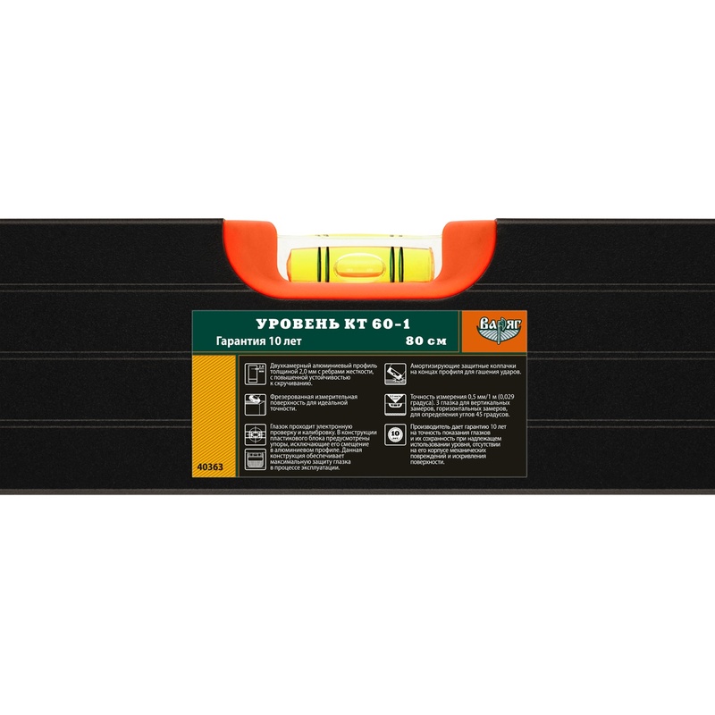 В строительном магазине Сатурн можно купить товар "Уровень Варяг 40363 КТ 60-1 усиленный, 3 глазка, 800 мм" по цене от 2653 руб с доставкой за 2 часа по Нефтекамску или оформить самовывоз.