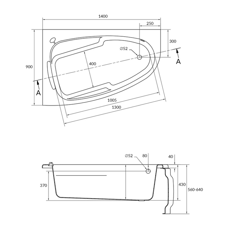Ванна акриловая Cersanit Joanna, без ножек, 1400х900 мм левая
