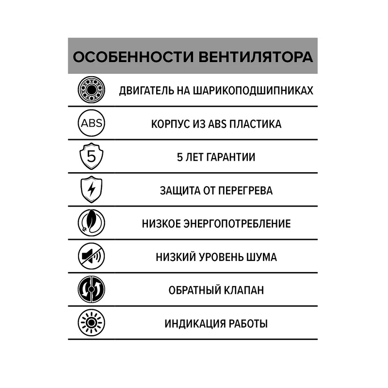 Используется в малых и средних помещениях, бытового или коммерческого назначения. Обладает высокой производительностью - 90 м3/ч. Возможно использование в помещениях повышенной влажности благодаря классу защиты IP25. Оборудован антимоскитной сеткой.