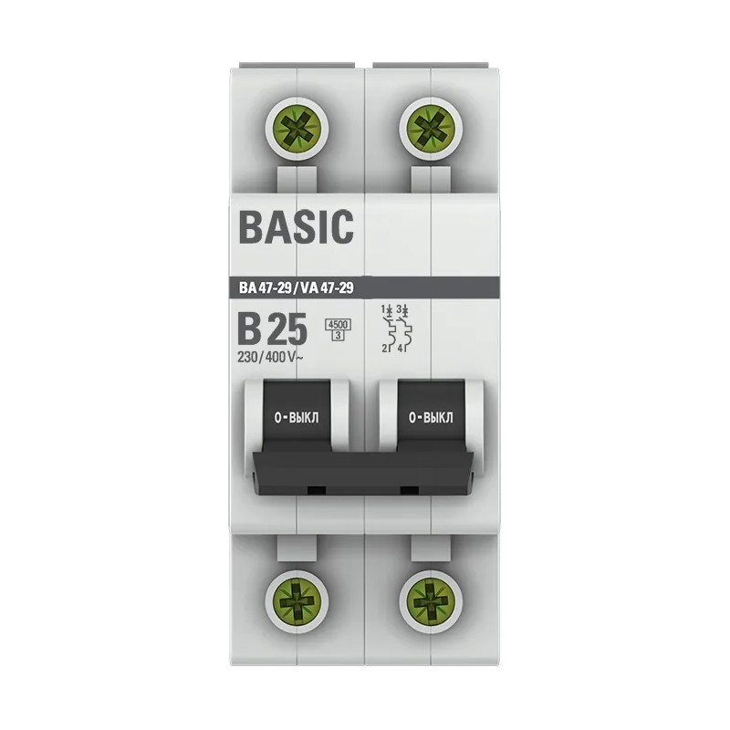 Выключатель автоматический EKF ВА 47-29 4,5кА, С 25А, 2П