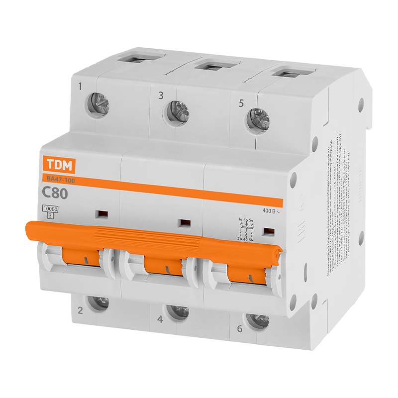 Выключатель автоматический TDM ВА 47-100 10кА, С 80А, 3П