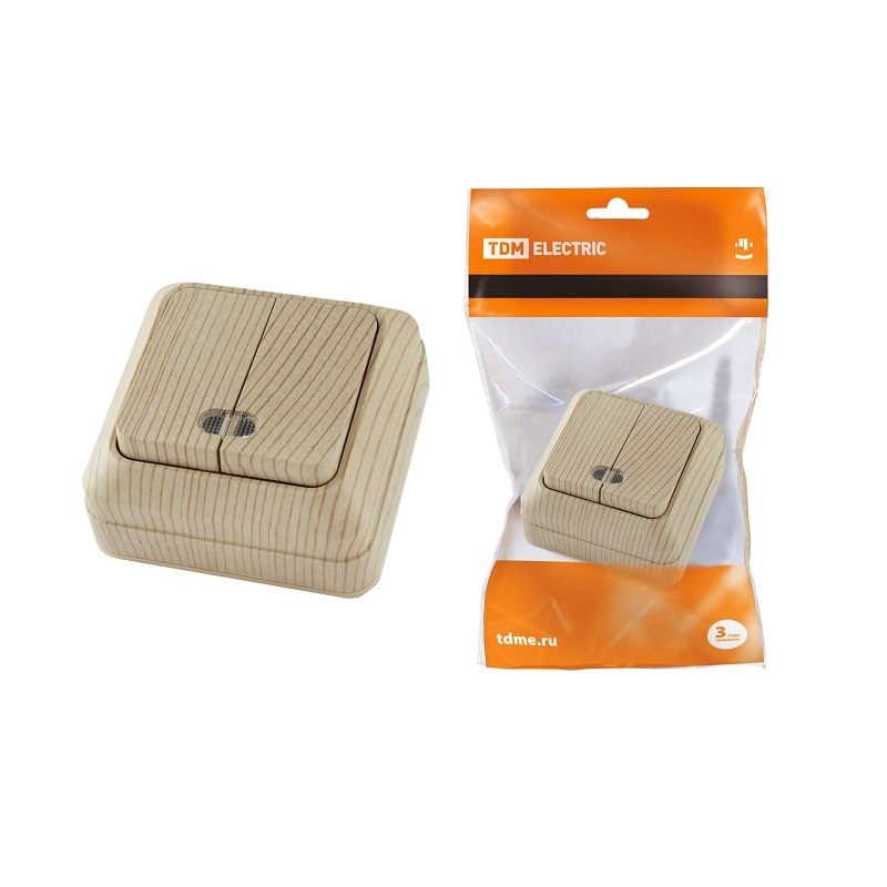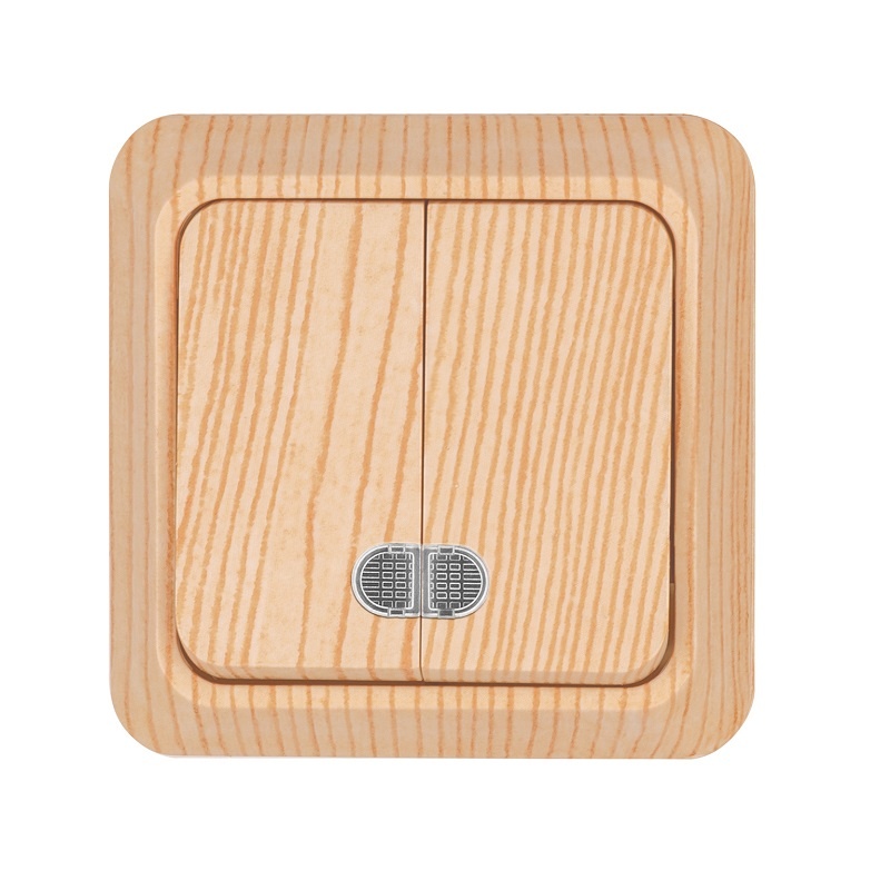 Выключатель о/у Ладога SQ1801-0046, 2 клавиши, с/инд, светлое дерево